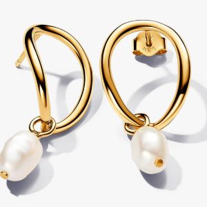 Organically Shaped Circle & Baroque Treated Freshwater Cultured Pearls Drop Earrings | Gold plated