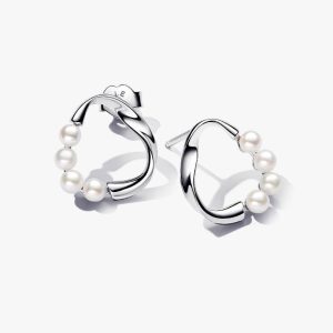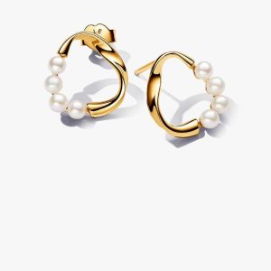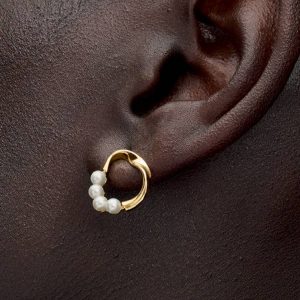 Organically Shaped Circle & Treated Freshwater Cultured Pearls Stud Earrings | Sterling silver