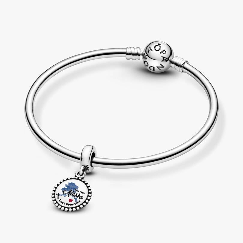 For all who call Alaska their home, love to visit or dream of exploring the last frontier—this classic sterling silver dangle charm captures the state’s shape in glossy blue enamel with “Alaska” beautifully scripted in b
