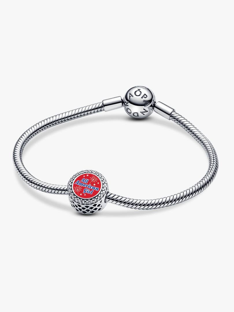 Show off your patriotic spirit with the Engravable All American Girl Charm. Crafted in sterling silver, this bold design features a vibrant red background bursting with firework details, symbolizing the excitement of Ind