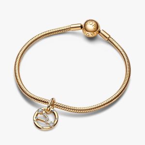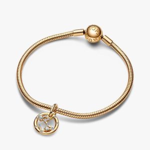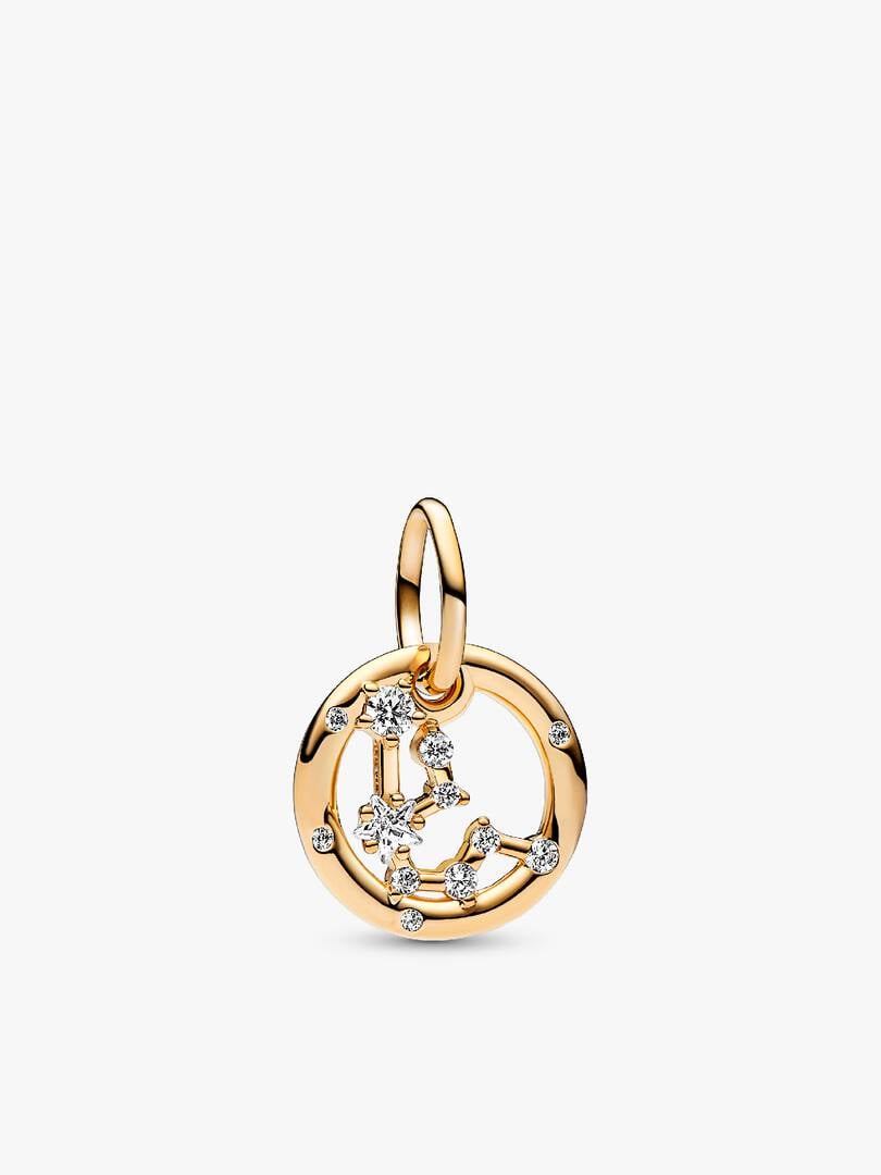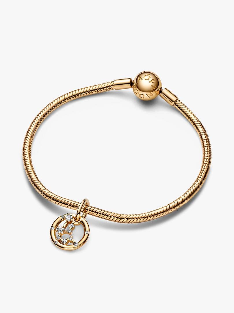Let the stars guide your look with the brand Aquarius Zodiac Dangle Charm Bracelet Set. The dangle is crafted from our 14k gold-plated unique metal blend, has a circular outer frame and features clear sparkling cubic z