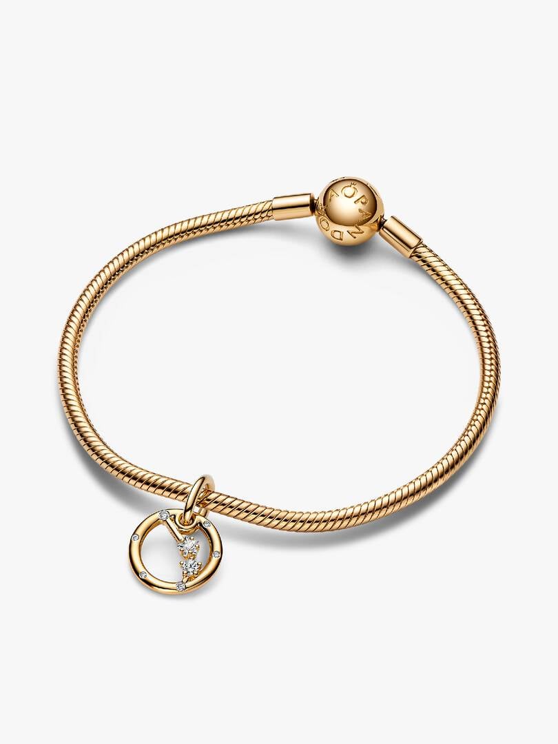 ic zirconia as well as the shape of the Aries zodiac sign. The back side of the frame is engraved with “Aries”. Bold, confident and proactive, the Aries in your life can always be counted on to be a natural leader filled with great energy. Beautifully paired with a matching 14k gold-plated brand Moments Snake Chain Bracelet. Wear it as a sign of your own sign’s strength or give it as a gift of appreciation to the Aries in your life.