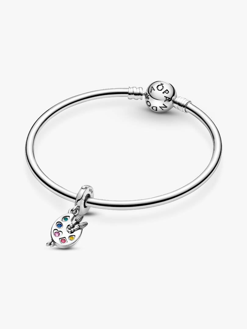 Express yourself with the Artist’s Palette Dangle Charm. Hand-finished in sterling silver, this colourful charm represents a 3D artist’s palette with five vivid paint colours represented by red cubic zirconia and pink, y