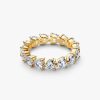 A wearable symbol of everlasting love. Heart-shaped stones and V-shaped prongs repeat to create this sparkling eternity ring: a contemporary take on the classic setting.