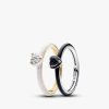 Opposites attract. This bold-meets-bright set features a black enamel ring in sterling silver and a white enamel ring in 14k gold plating — crafted for stacking, styling and making a heartfelt statement.