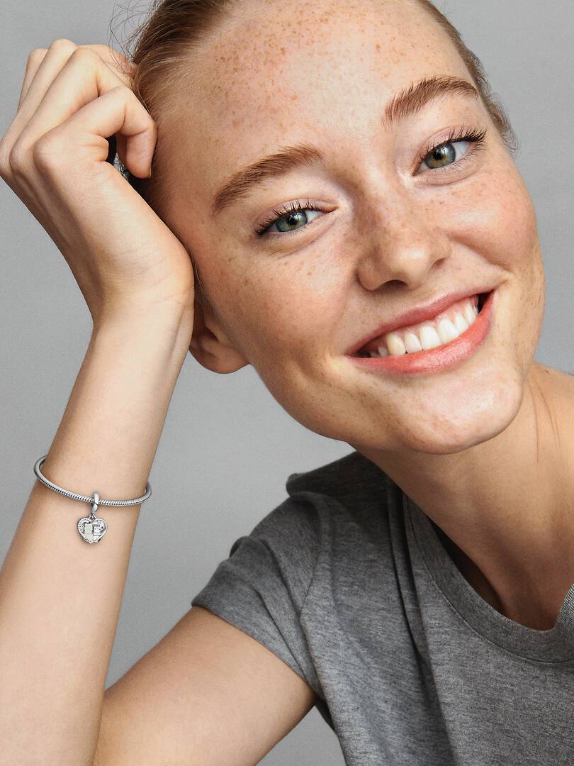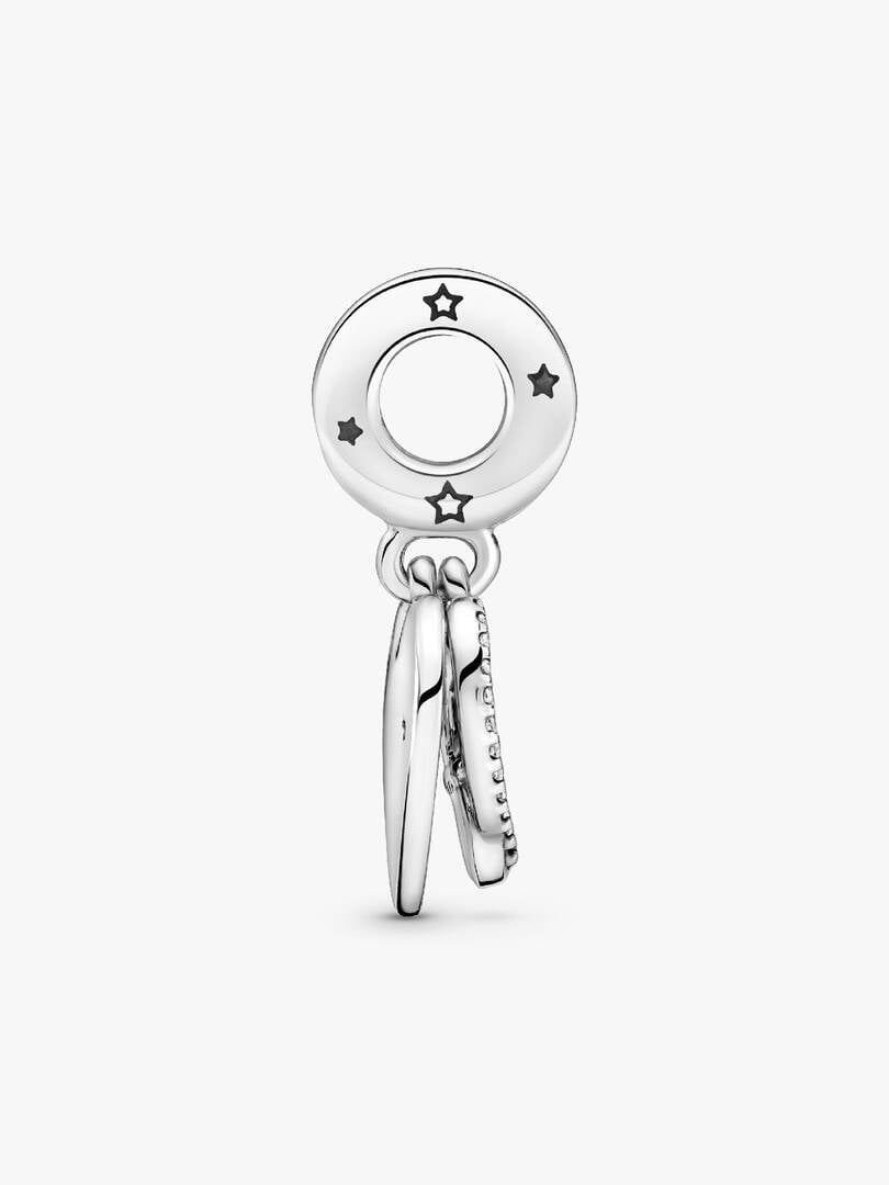 Show off your love for cats with the Cats & Hearts Dangle Charm. Hand-finished in sterling silver, this charm features an open front dangle with two cats whose tails form a heart that’s partly embellished with clear cubi