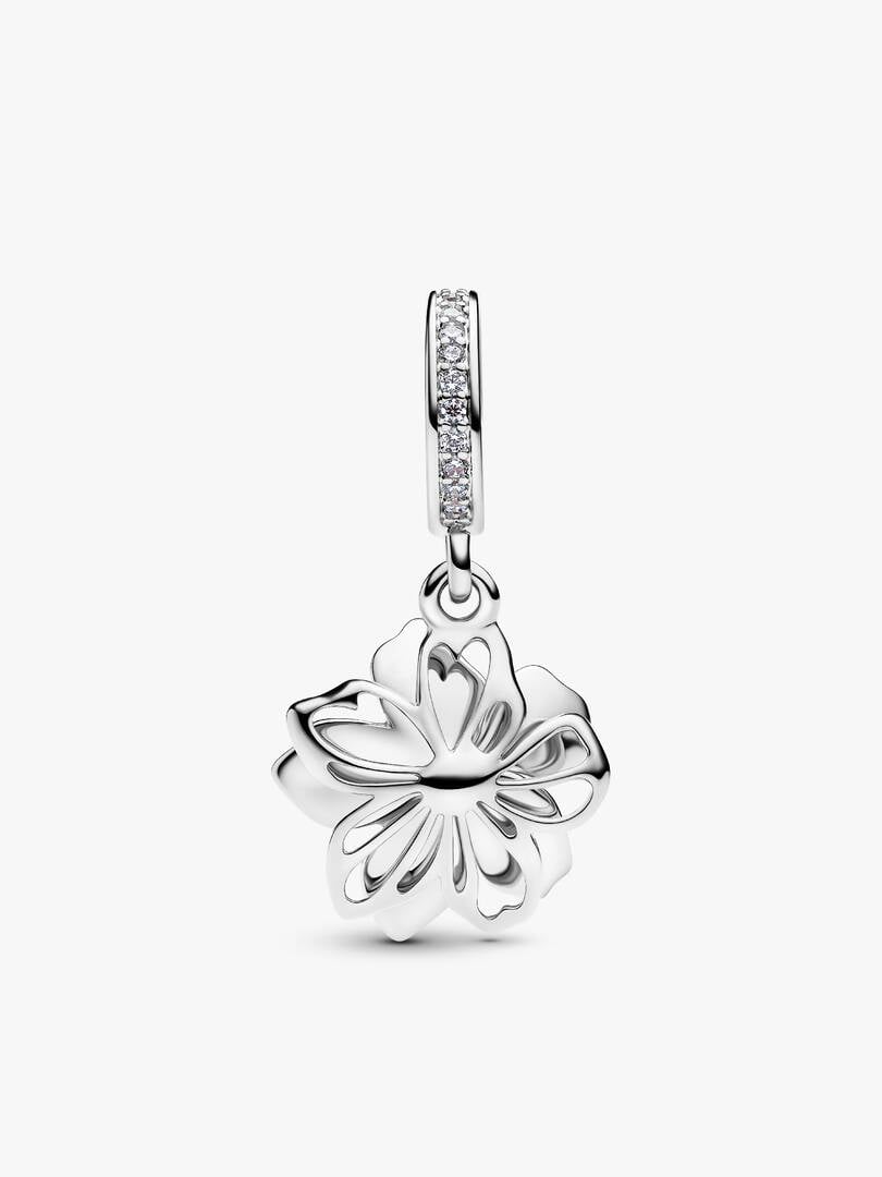 Celebrate spring with the Cherry Blossom Charm Necklace Set. The adjustable sterling silver chain pairs perfectly with the Blue Blossom Dangle Charm, featuring a rotating cherry blossom with turquoise and white enamel.
