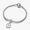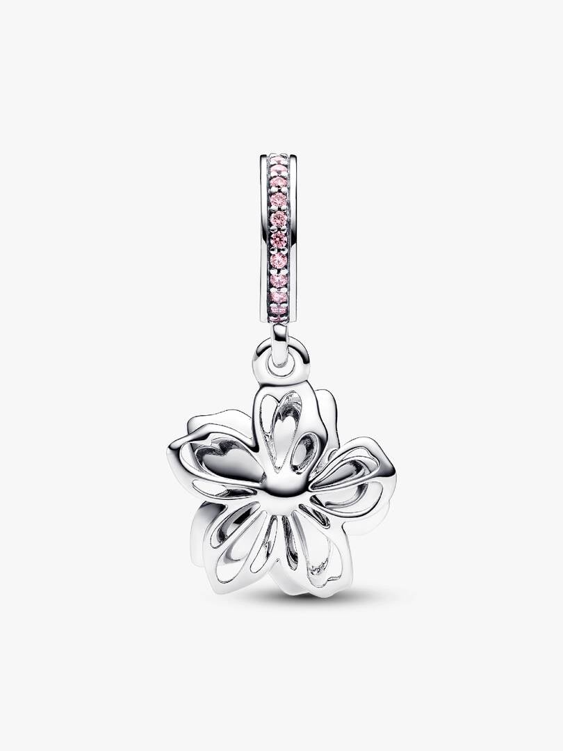 Celebrate the first signs of spring with our sterling silver Cherry Blossom Dangle Charm. Featuring hand-applied pink and white enamel and accented by sparkling pink cubic zirconia, the petals on our cherry blossom rotat