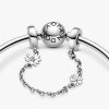 Keep your spring charm collection in place with the brand Moments Daisy Flower Safety Chain Charm. With two different-sized daisy flower details, the sterling silver safety chain makes sure that your charms stay safely
