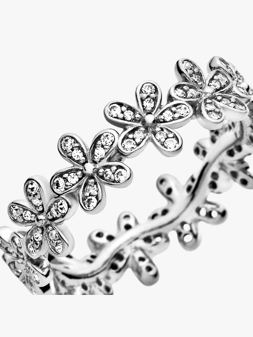 Wrap your finger in flowers with this dazzling brand daisy ring crafted in sterling silver. Evoking feelings of joy and happiness, the delicate chain of daisies is adorned with shimmering cubic zirconia stones that cat