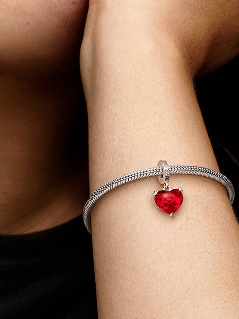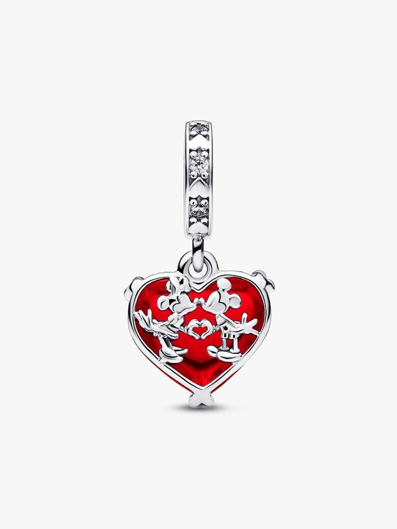 Disney Mickey & Minnie Mouse Kiss Red Murano Glass Dangle Charm | Sterling silver