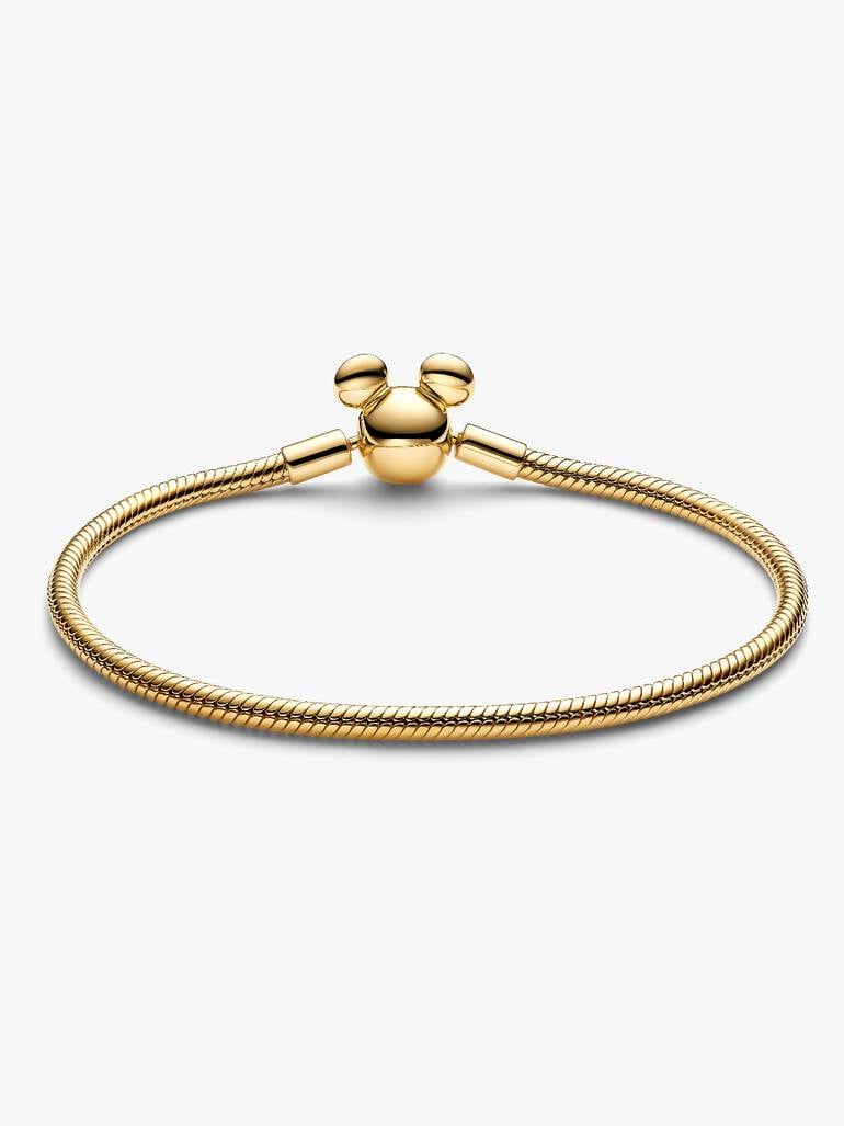 Style your Disney x brand charm collection on the Disney Mickey Mouse Clasp Moments Snake Chain Bracelet. This 14k gold-plated snake chain bracelet features a clasp inspired by the iconic Mickey Mouse head silhouette.