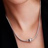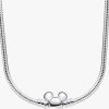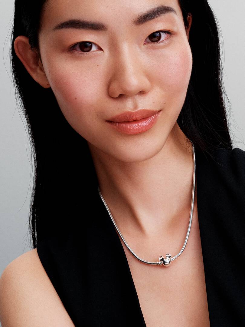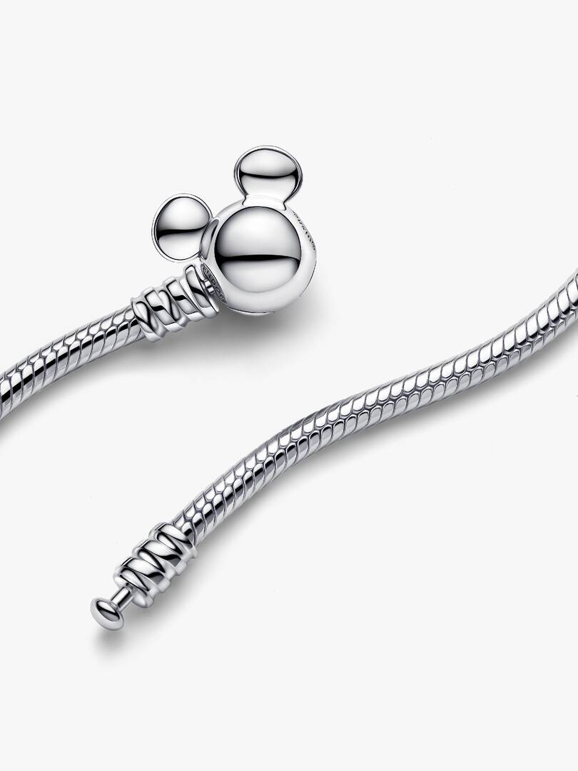 Disney’s Mickey Mouse is loved for his joyful character and heart of gold. This time, that heart of gold takes shape in sterling silver, as the clasp of a Disney x brand snake chain necklace design. The necklace can be