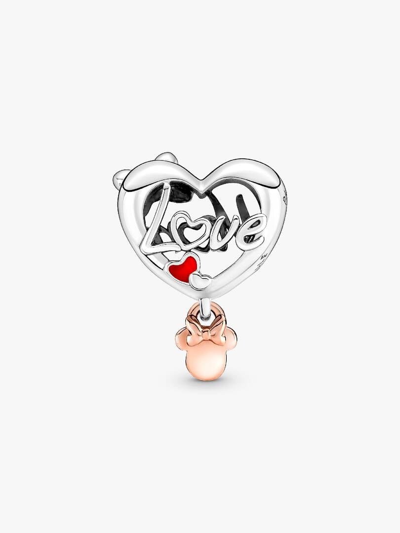 The Disney Minnie Mouse Mum Heart charm is the perfect gift for every Disney mom. Hand-finished in sterling silver with openwork script ‘MUM’ and ‘LOVE’ on either side, the charm features a dangling detail in 14k rose go