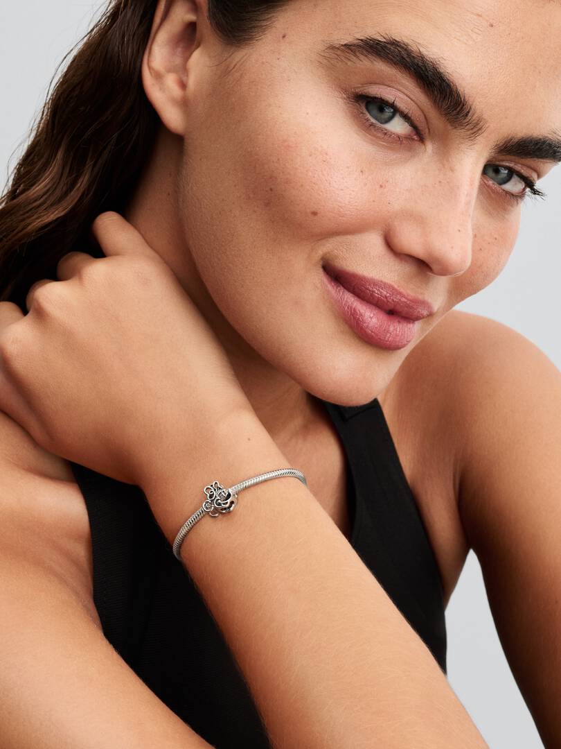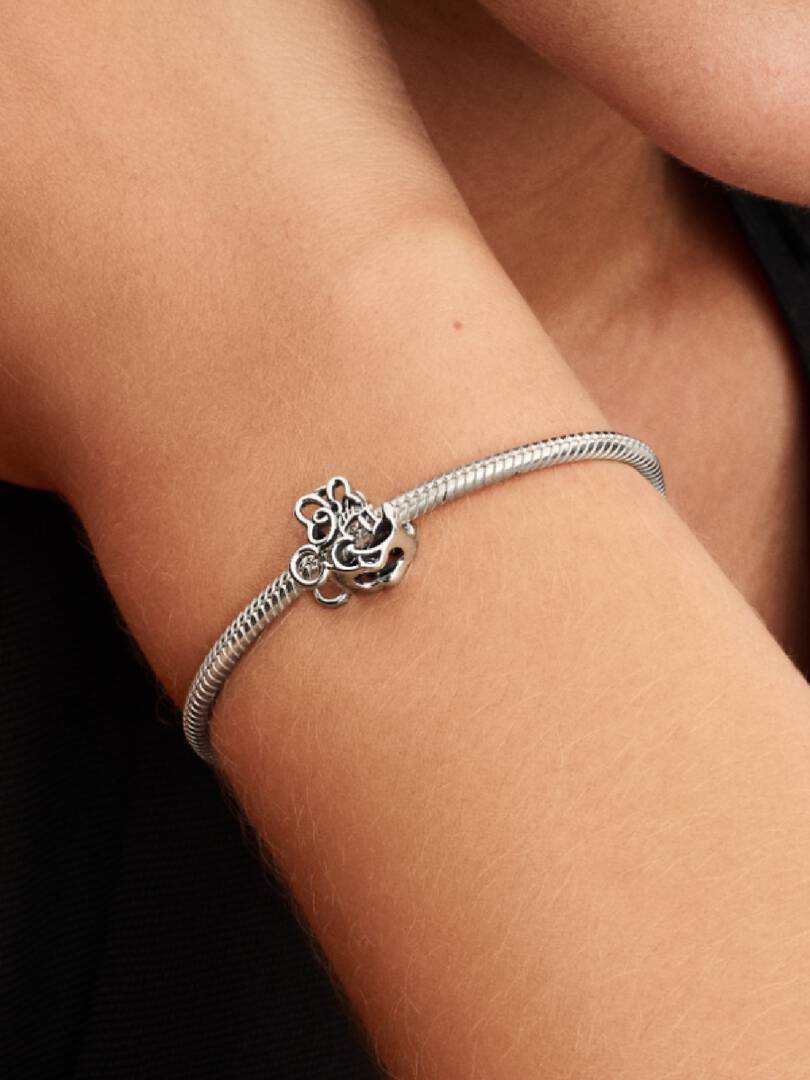 Celebrate the magic of Disney with a sterling silver charm featuring Minnie Mouse’s iconic head silhouette.