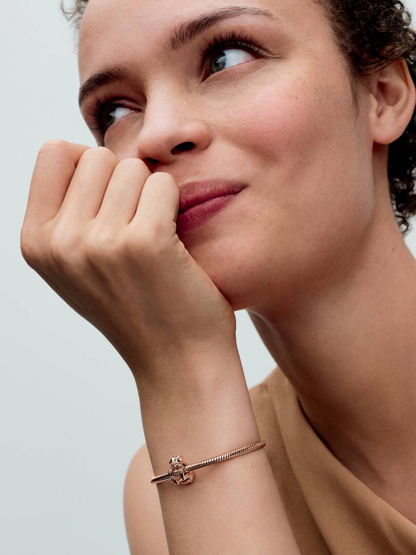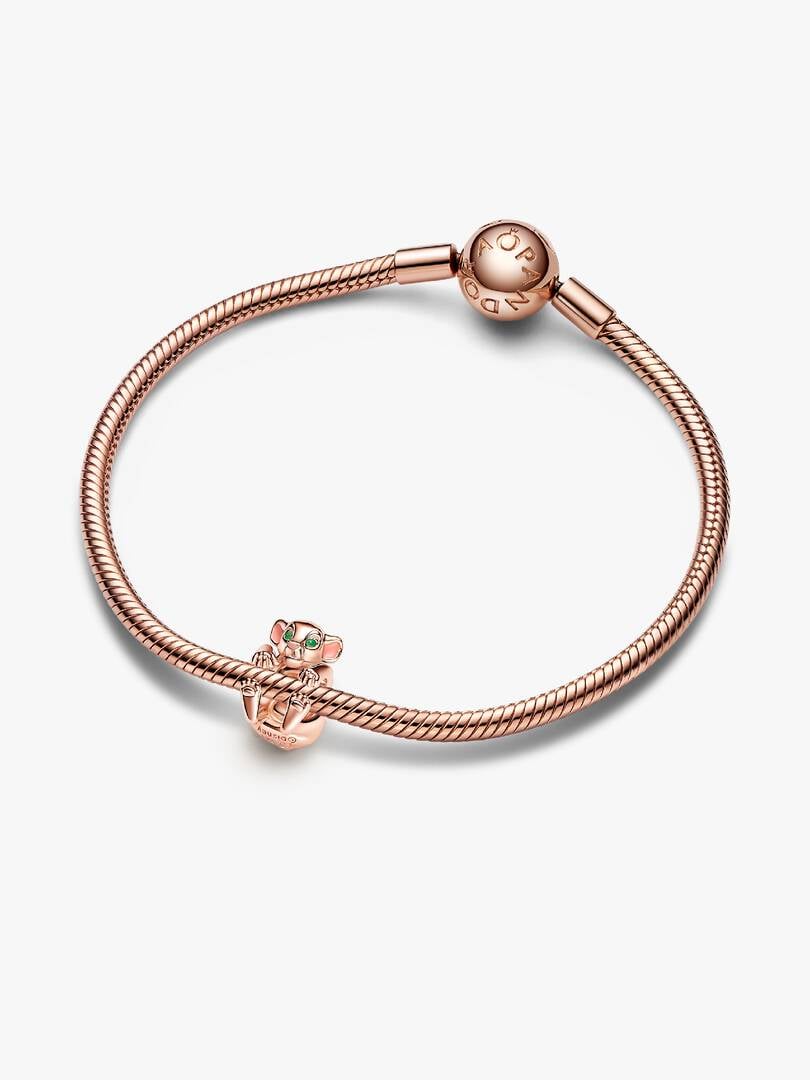 Pay homage to an iconic character with the Disney The Lion King Nala Charm. Featuring Disney’s Nala character crouched and rendered in 14k rose gold plating, this design includes realistic grooved lines and enamel detail