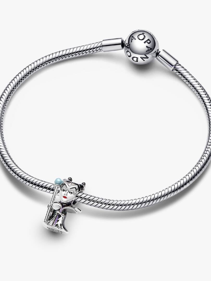 Fall under the spell of Disney’s Maleficent. A complex blend of darkness, vulnerability and strength, Maleficent rules over her domain with dark magic. Our new charm depicts her in sterling silver with hand-applied ename