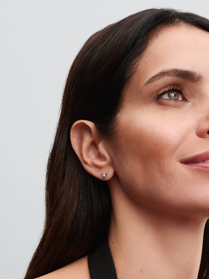 Embrace a dash of cool-toned color with the Elevated Pink Heart Stud Earrings. Made of sterling silver, these earrings feature raised heart-shaped pink stones surrounded by sparkling pavé. Inspired by feelings of love an