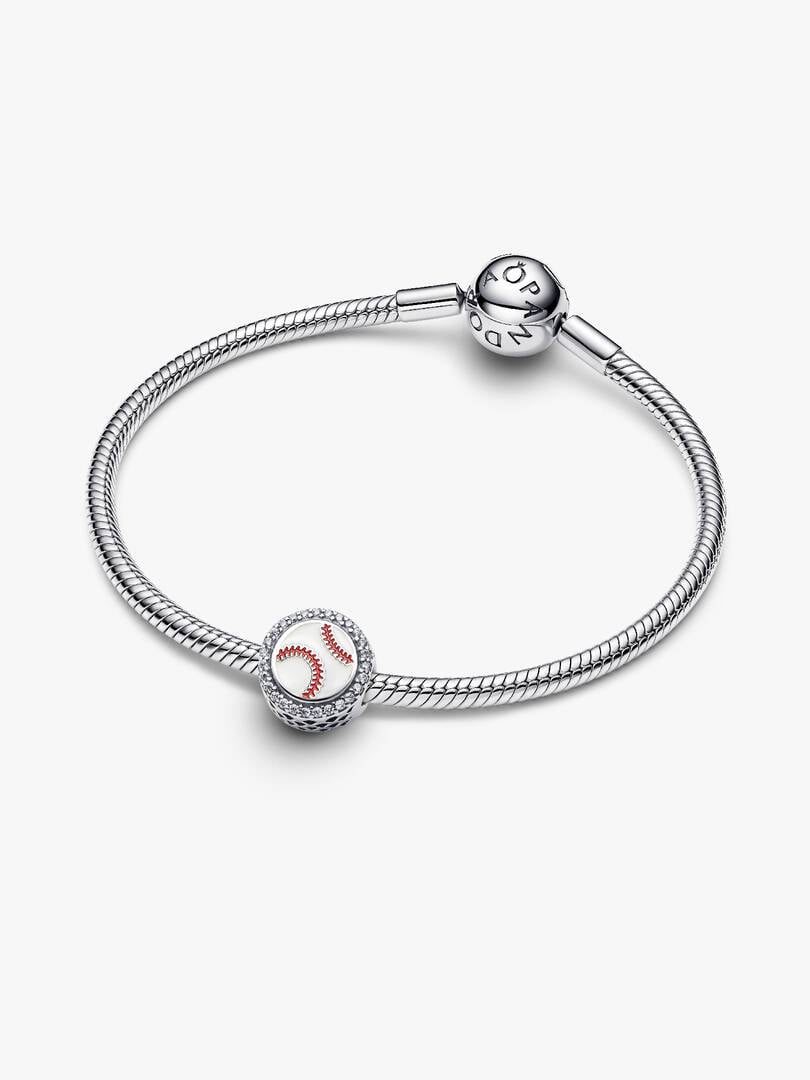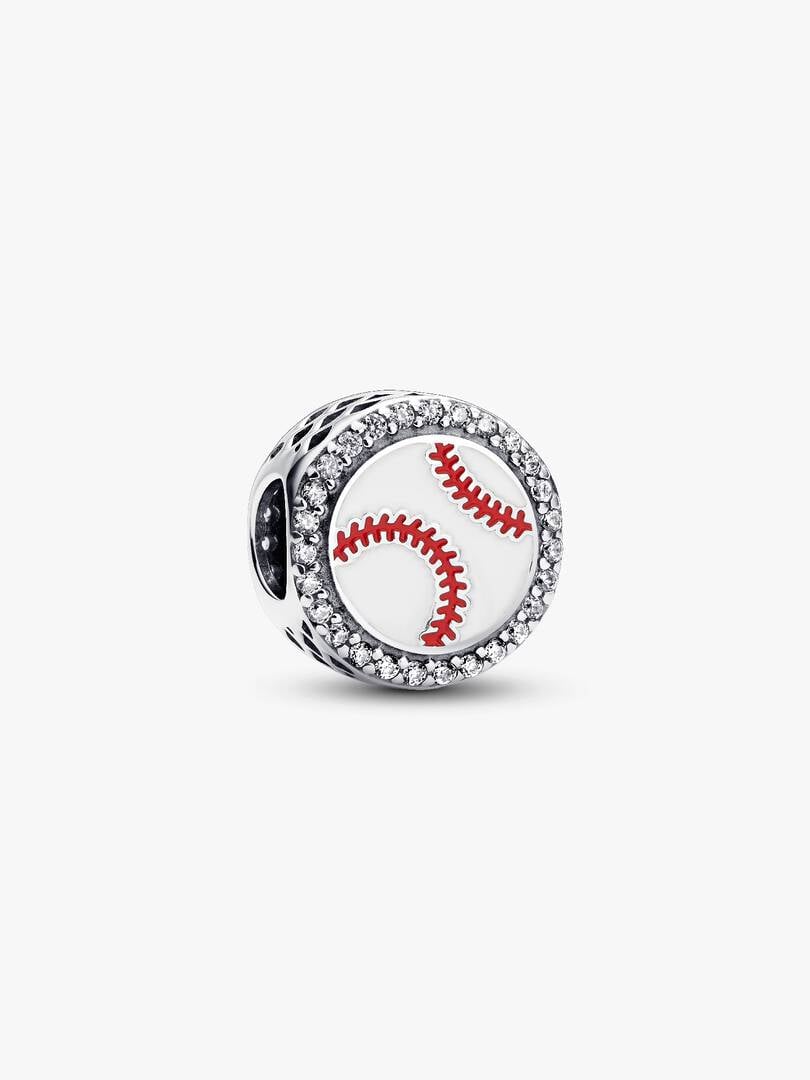 Strike out in style with our sterling silver baseball charm. Featuring white and red enamel to highlight intricate details, it offers a polished back to engrave a special message.