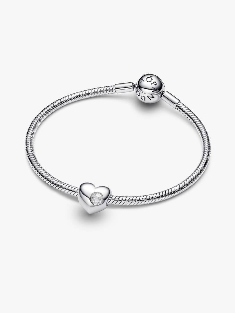 Engravable Clear Stone Heart Charm | Pendant | Sterling silver