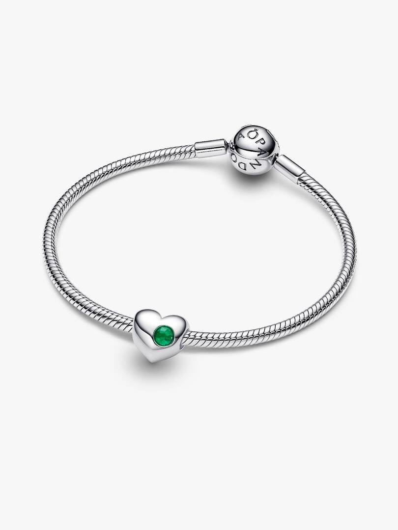 Engravable Green Stone Heart Charm | Pendant | Sterling silver