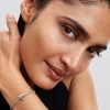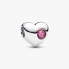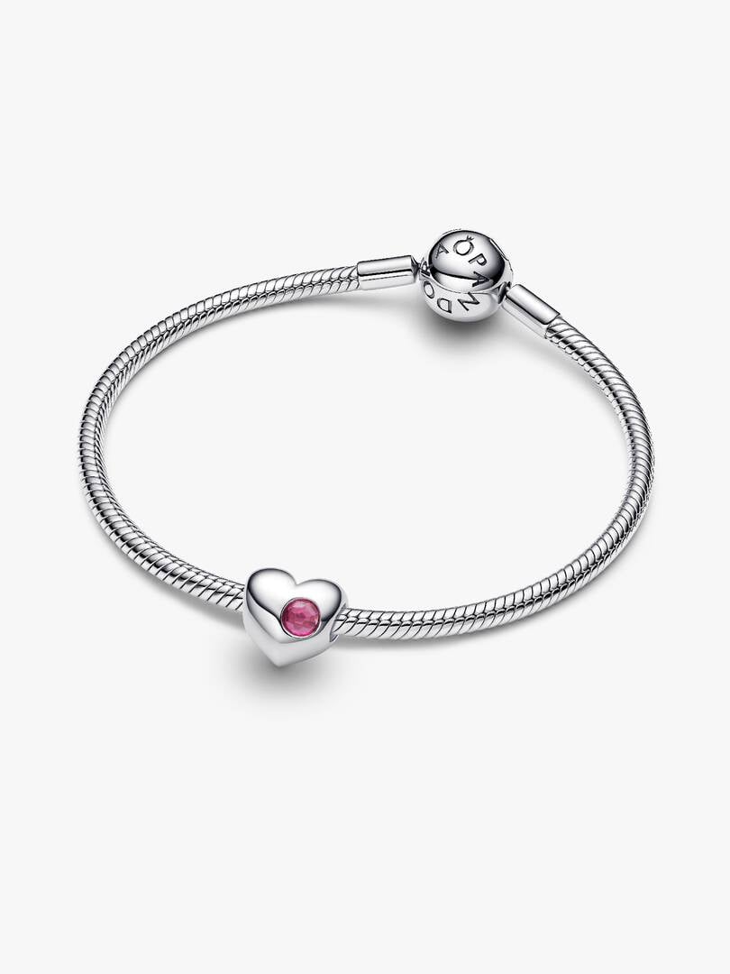 Engrave a message of love. Our sterling silver heart charm with a flush-set pink man-made crystal is the perfect canvas for a personal note or meaningful memento.