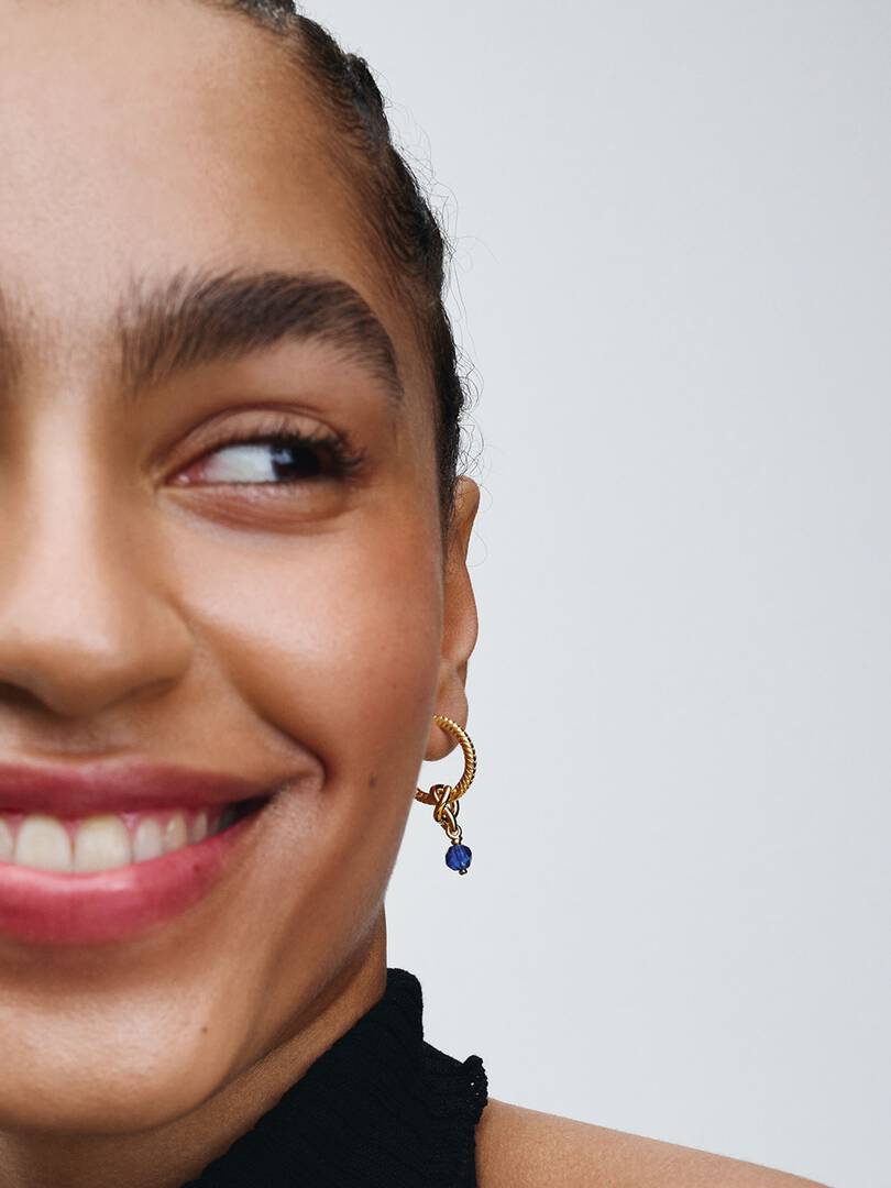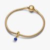 Wear a symbol of forever, that’s personal to you. This 14k gold-plated dangle charm is made up of a triple knotted circle that intertwines to resemble an infinity sign. The twist carries a faceted princess blue man-made