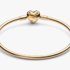 Fall in love with our Celestial Heart Clasp Bangle. Plated in 14k gold, our iconic heart clasp gets a stellar update, featuring a moonlit night sky complete with sparkling stones. Whether you wear it with or without char