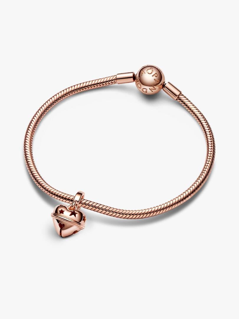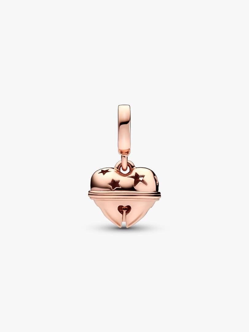 Do you hear sleigh bells? The Festive Bell Dangle Charm brings an element of sound to your festive jewelry looks. A classic holiday motif with a brand twist, the 14k rose gold-plated bell charm is shaped like a heart w