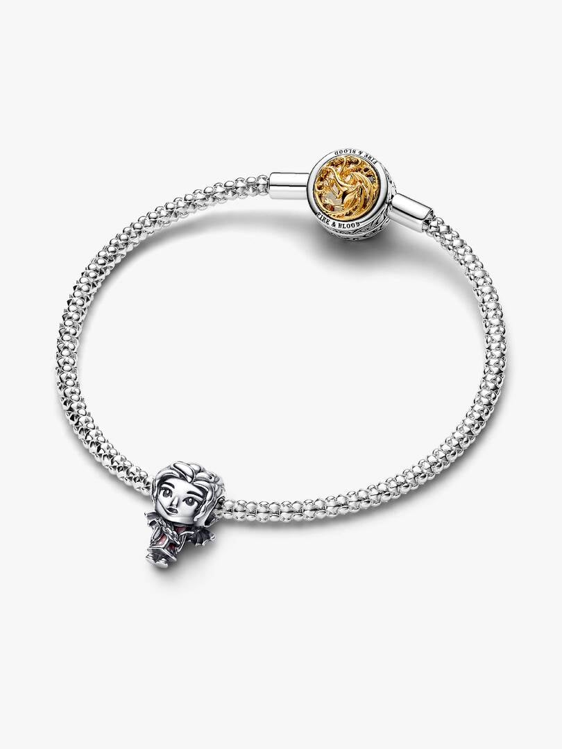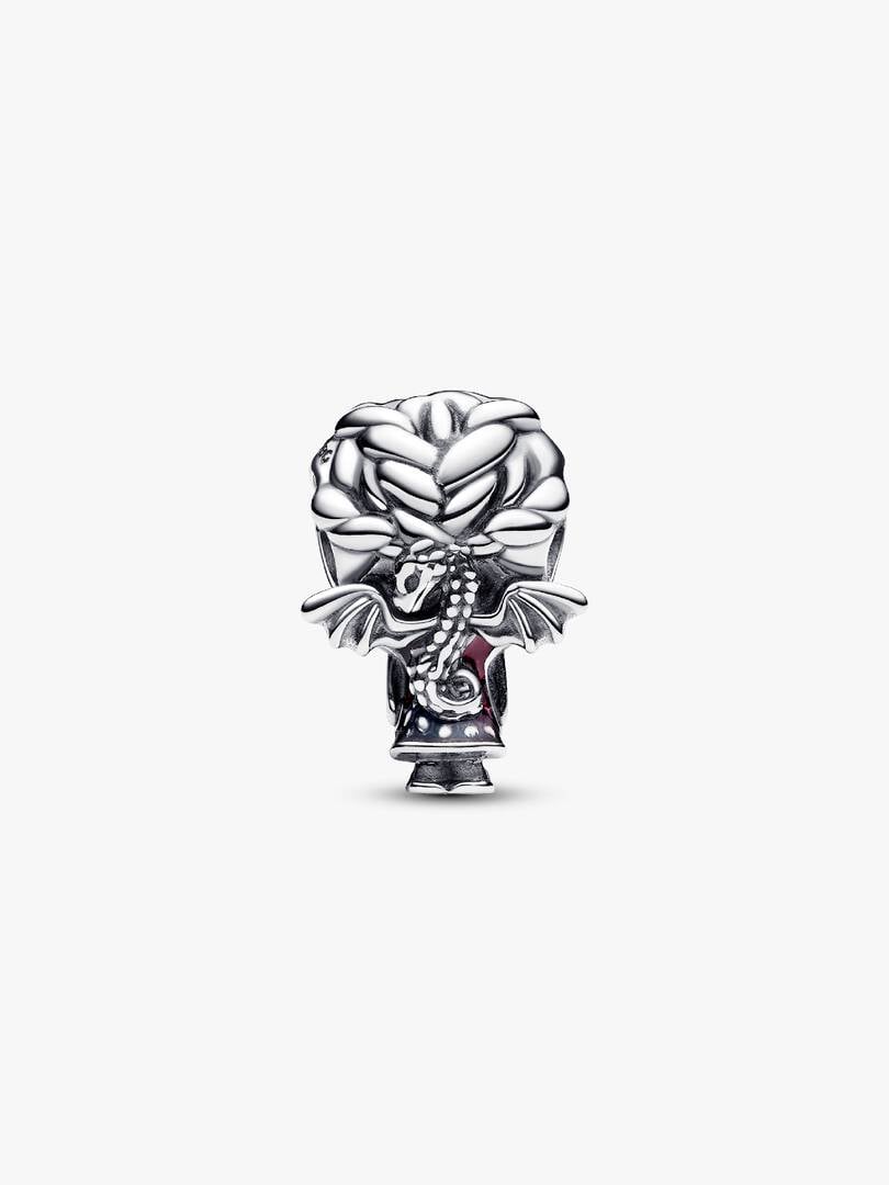 including transparent red enamel with a dragon-scale pattern on the clothes. On her back sits a small replica of Drogon, one of Daenerys’s three dragons. This charm will remind you of her strength and determination on her incredible journey.