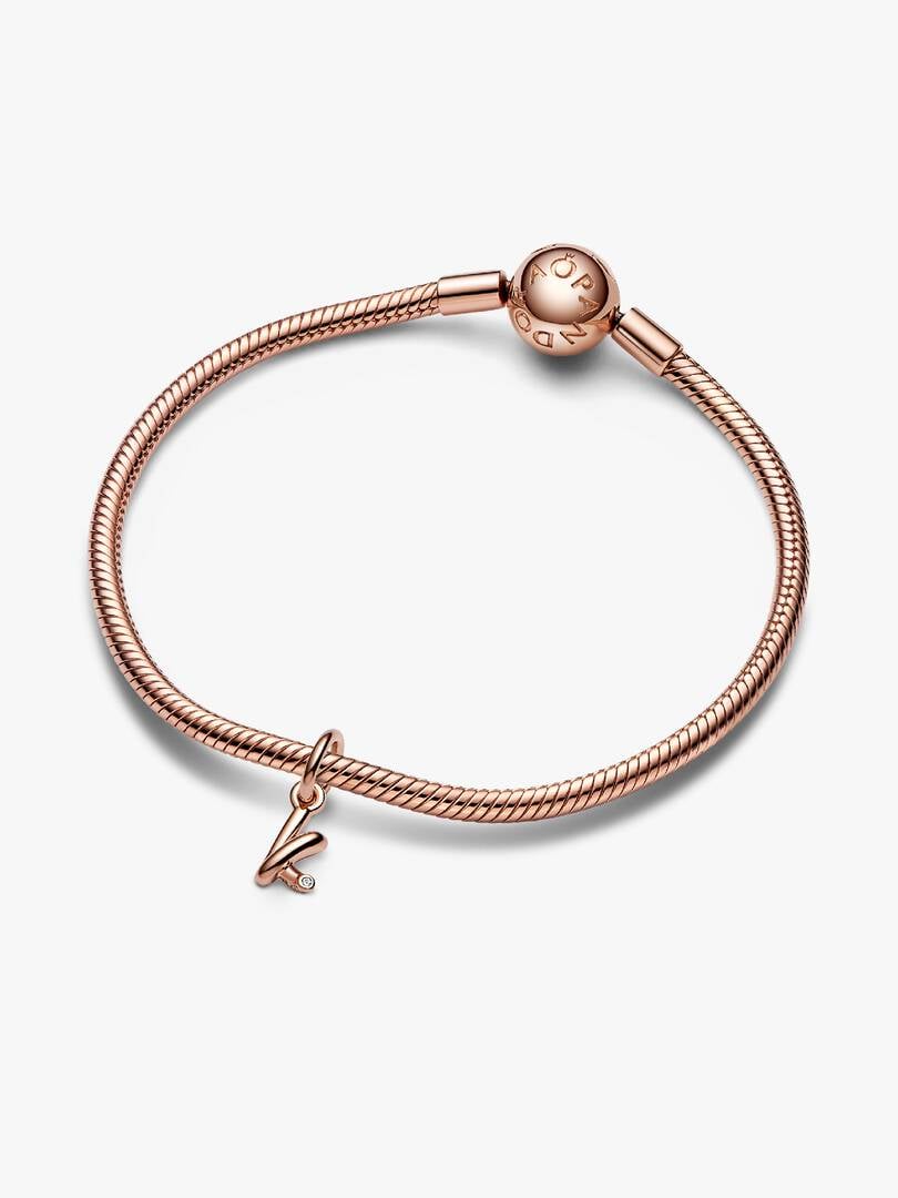 FINAL SALE – Letter K Script Alphabet Dangle Charm | Pendant | Rose gold plated
