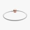 The perfect starting point for your new charm collection or a sleek addition to an existing bracelet stack, this two-tone bangle is cast from sterling silver. It features a 14k rose gold-plated ball clasp, minimally deta