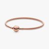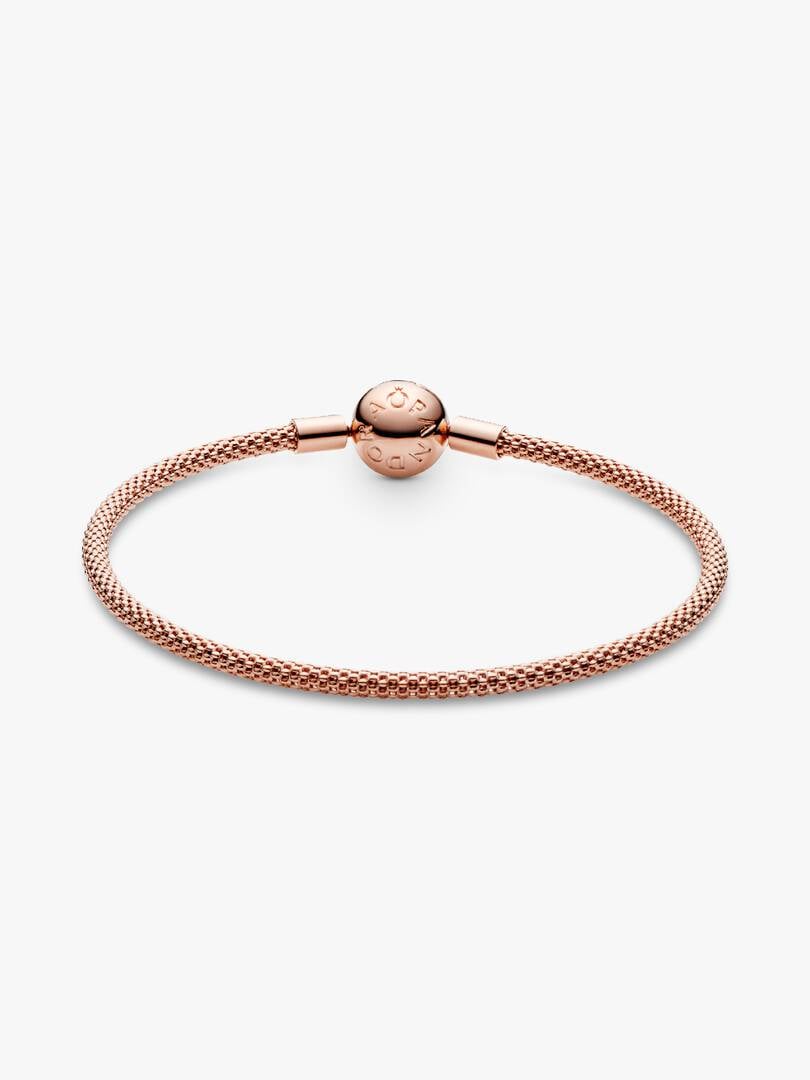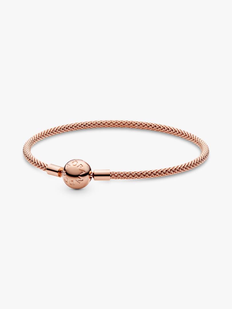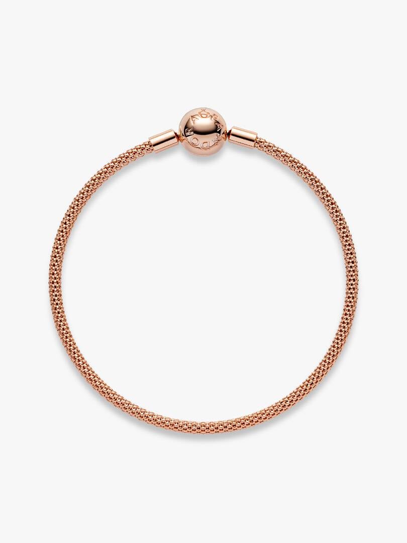 Start your next charm collection with this stylish brand Moments Mesh Bracelet with a textured finish. The 14k rose gold-plated bracelet’s woven mesh is perfect for adding contrast to layered looks and makes for effort