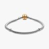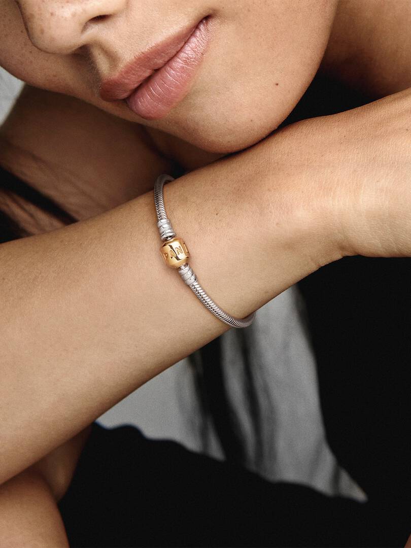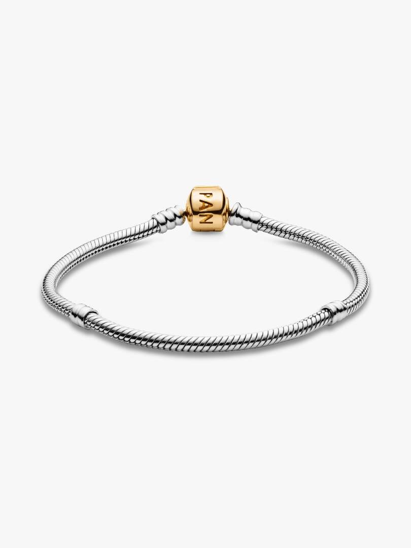 One of our signature styles, used by women around the world as a base for unique combinations of meaningful charms, this two-tone snake chain charm bracelet is made from sterling silver and solid 14k gold. Detailed with