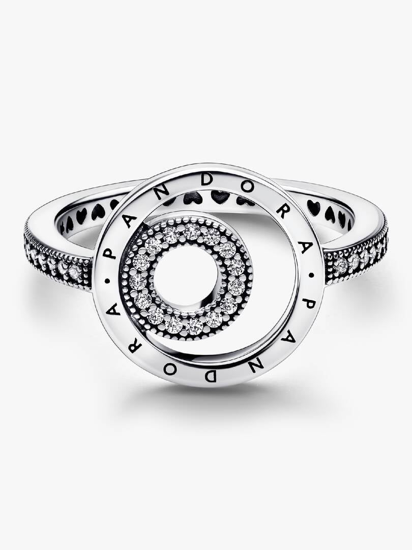 Crafted in sterling silver, the brand Signature Logo Circles Pavé Ring combines iconic design elements to create a sophisticated jewelry box staple. The off-centered placement of the inner circle adds a dynamic quality