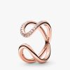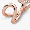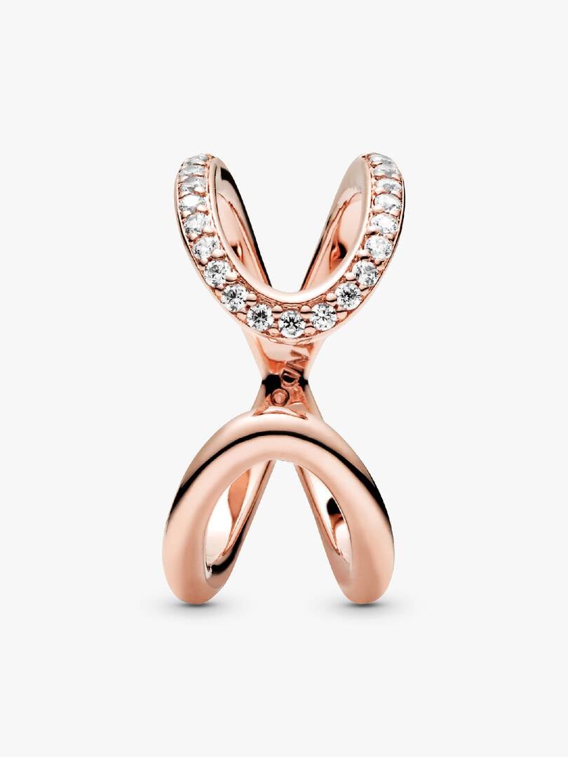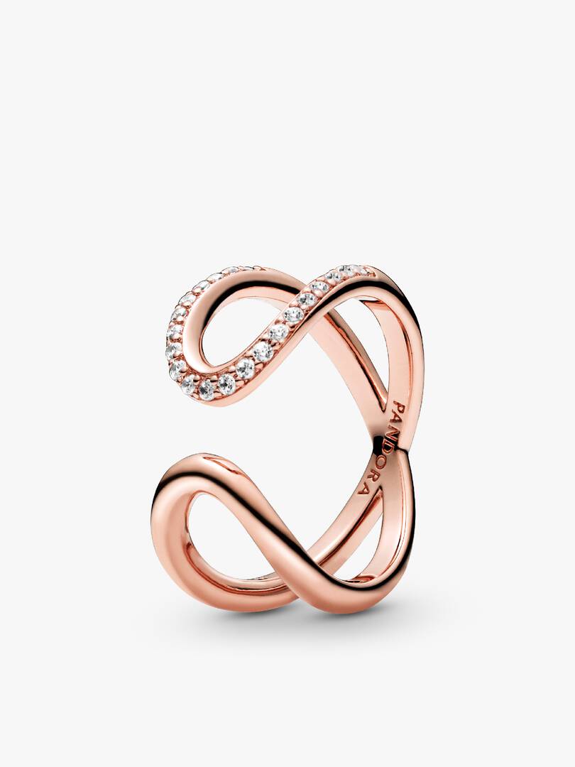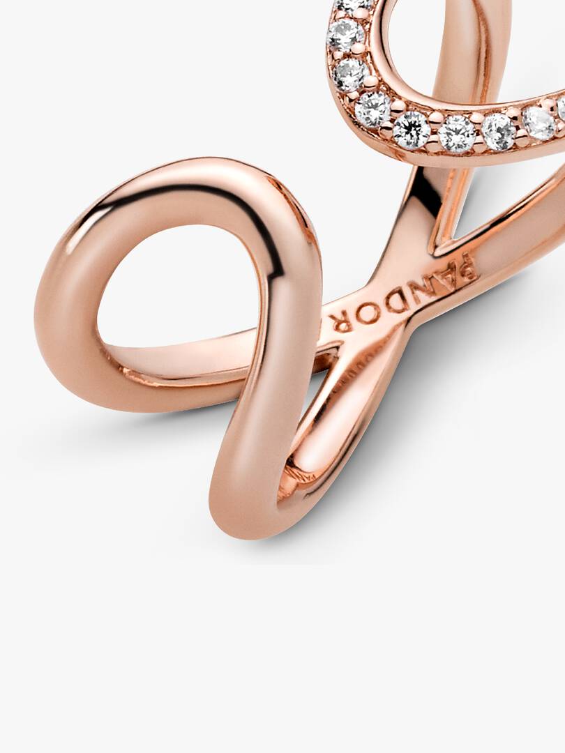 strikes. This 14k rose gold-plated ring is finished with 21 round brilliant-cut cubic zirconia, making it the perfect statement, symbolising the power of an infinite connection through its directional design and generous dimensions.