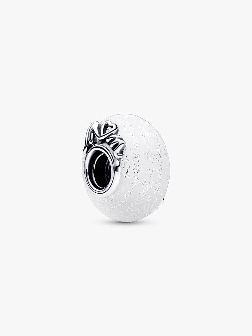 Gift a sweet message of love to the mother figure in your life with the Glittery White Murano Glass Mom & Love Charm. This hand-finished charm is crafted from sterling silver and glittering white Murano glass with a shim