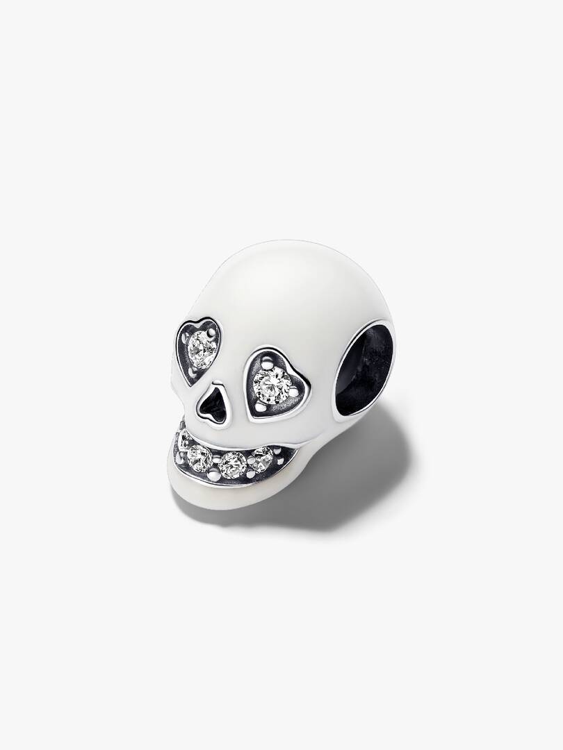 Add some edge to your look when you wear the Glow-in-the-dark Sparkling Skull Charm. This sterling silver charm features a skull covered in glow-in-the-dark enamel with a mouth and heart-shaped eyes sparkling with clear