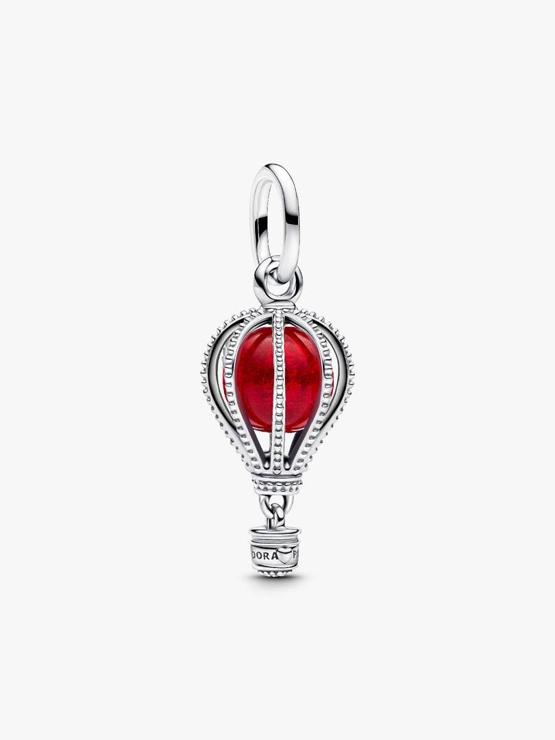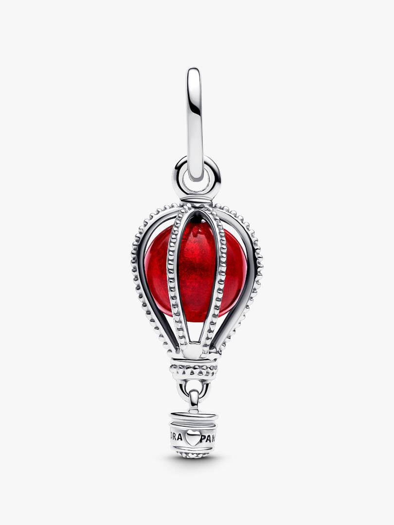Reach new heights with the Hot Air Balloon Murano Glass Dangle Charm crafted in sterling silver. A red Murano glass balloon is encased in microbeaded panels, while below the balloon, a small gondola awaits to transport y