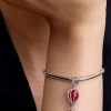 Reach new heights with the Hot Air Balloon Murano Glass Dangle Charm crafted in sterling silver. A red Murano glass balloon is encased in microbeaded panels, while below the balloon, a small gondola awaits to transport y