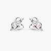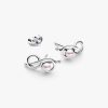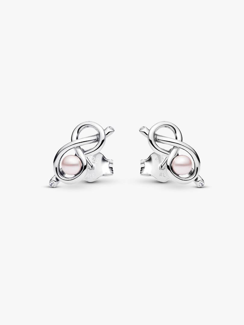 Bring a pop of pink to your ears with the Infinity Knot Stud Earrings. These sterling silver earrings feature pink lacquered artificial pearls nestled inside infinity knot symbols, which are also set with sparkling stone