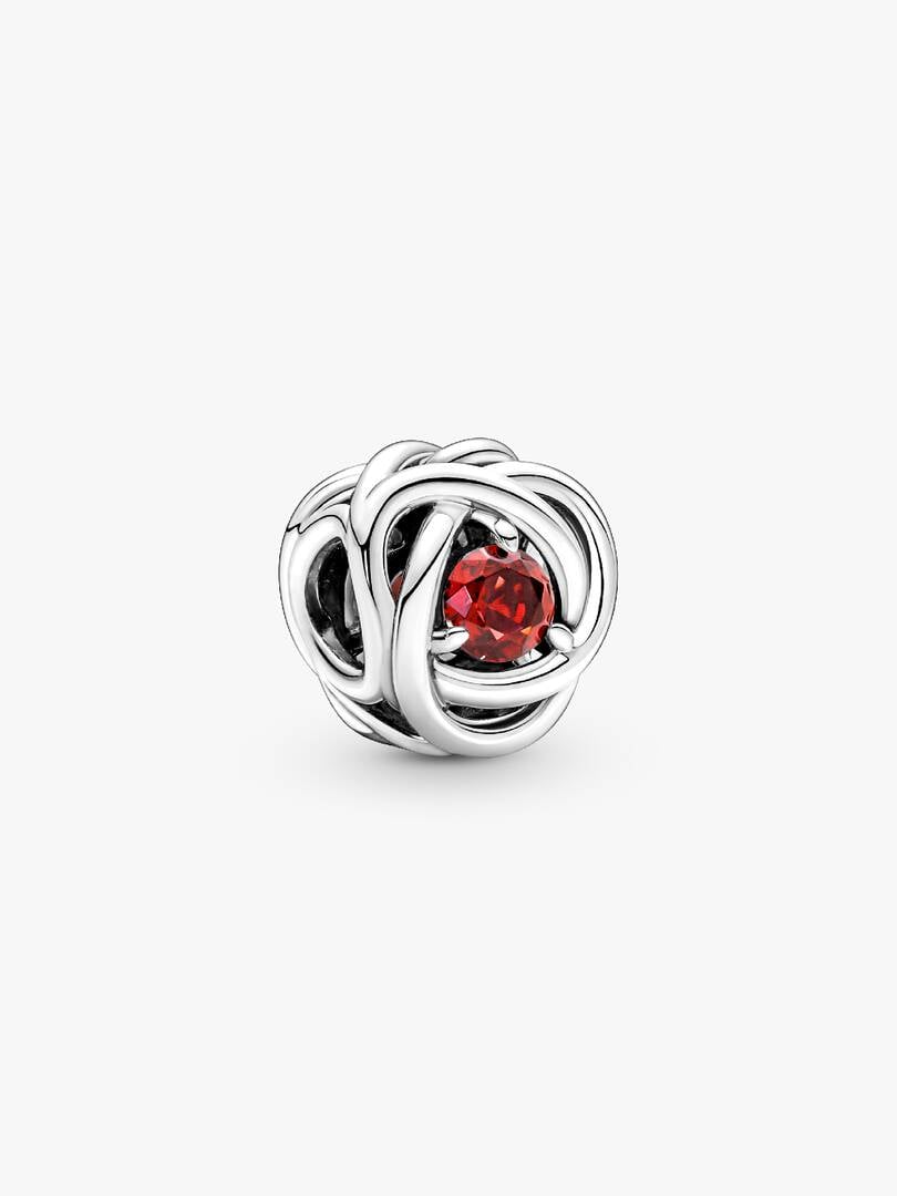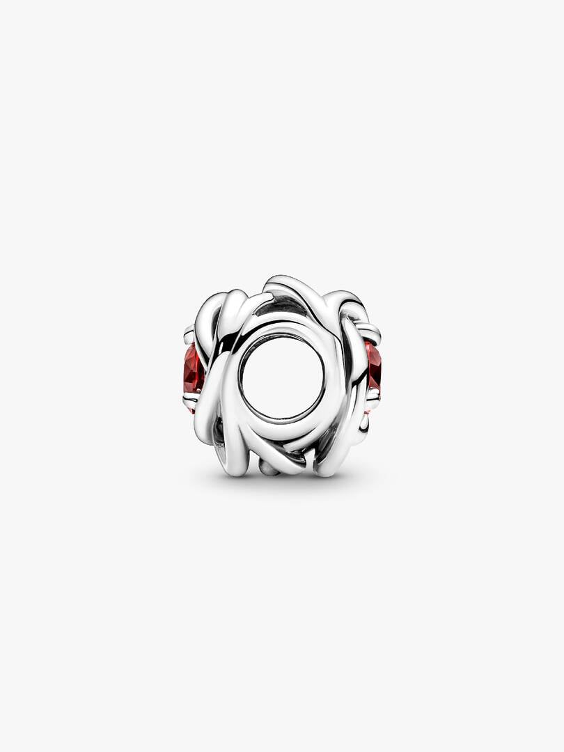 Add a pop of color to your bracelets and pendants with this True Red Eternity Circle Charm. This special piece is made in the shape of an infinity braid and is set with a romantic red crystal at its center. Symbolizing e