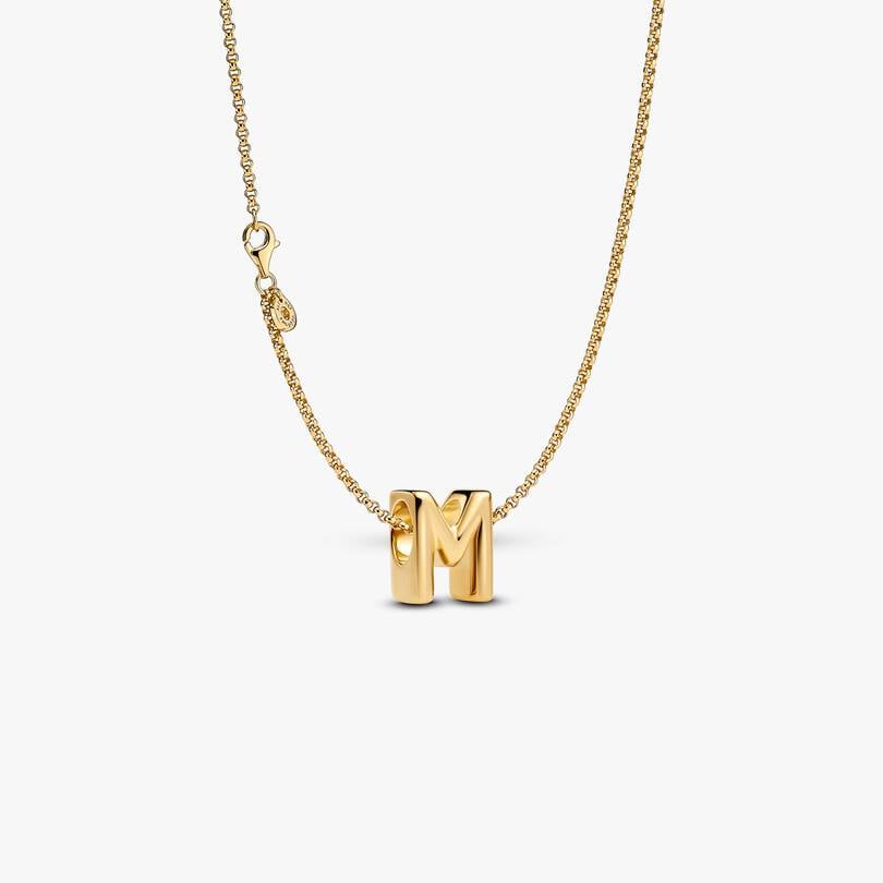 What does M represent to you? Make a statement with a Letter M Alphabet charm necklace. This 14k gold-plated set includes the Rolo Chain Necklace and Letter M Alphabet Charm, perfect for personalization.