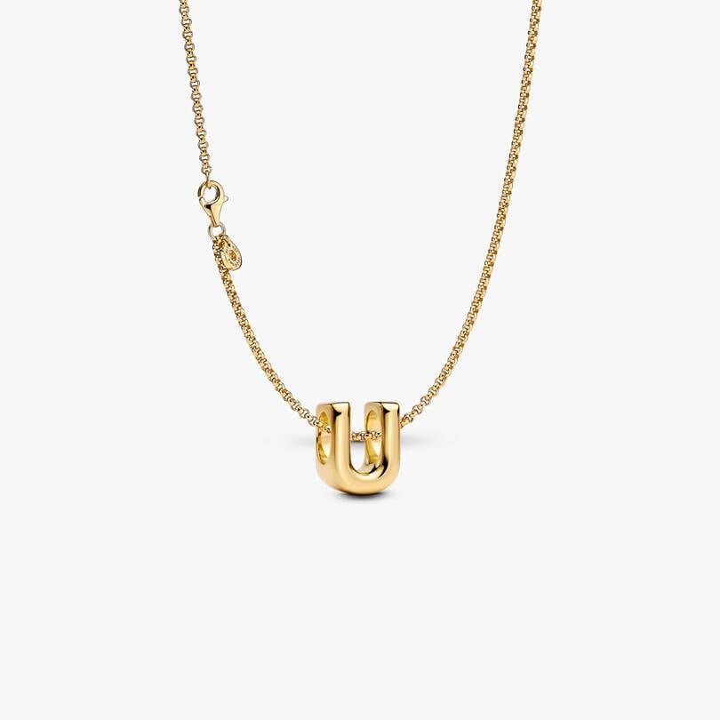 What does U represent to you? Make a statement with a Letter U Alphabet charm necklace. This 14k gold-plated set includes the Rolo Chain Necklace and Letter U Alphabet Charm, perfect for personalization.