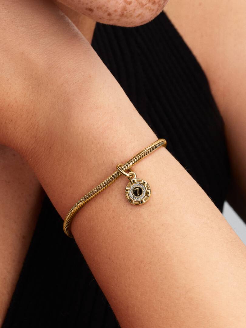 Celebrate the thrill of chance and the allure of possibility with a charm inspired by the iconic token of Vegas, featuring a casino chip design with poker card symbols and a bezel-set clear cubic zirconia stone.