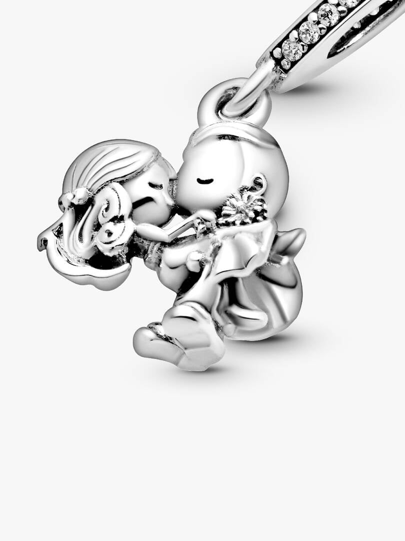 Make the special moment last forever with the sterling silver Married Couple Dangle Charm. Let the romance of saying “I do” live on with this emotional charm featuring a newlywed couple kissing. The groom gently holds hi