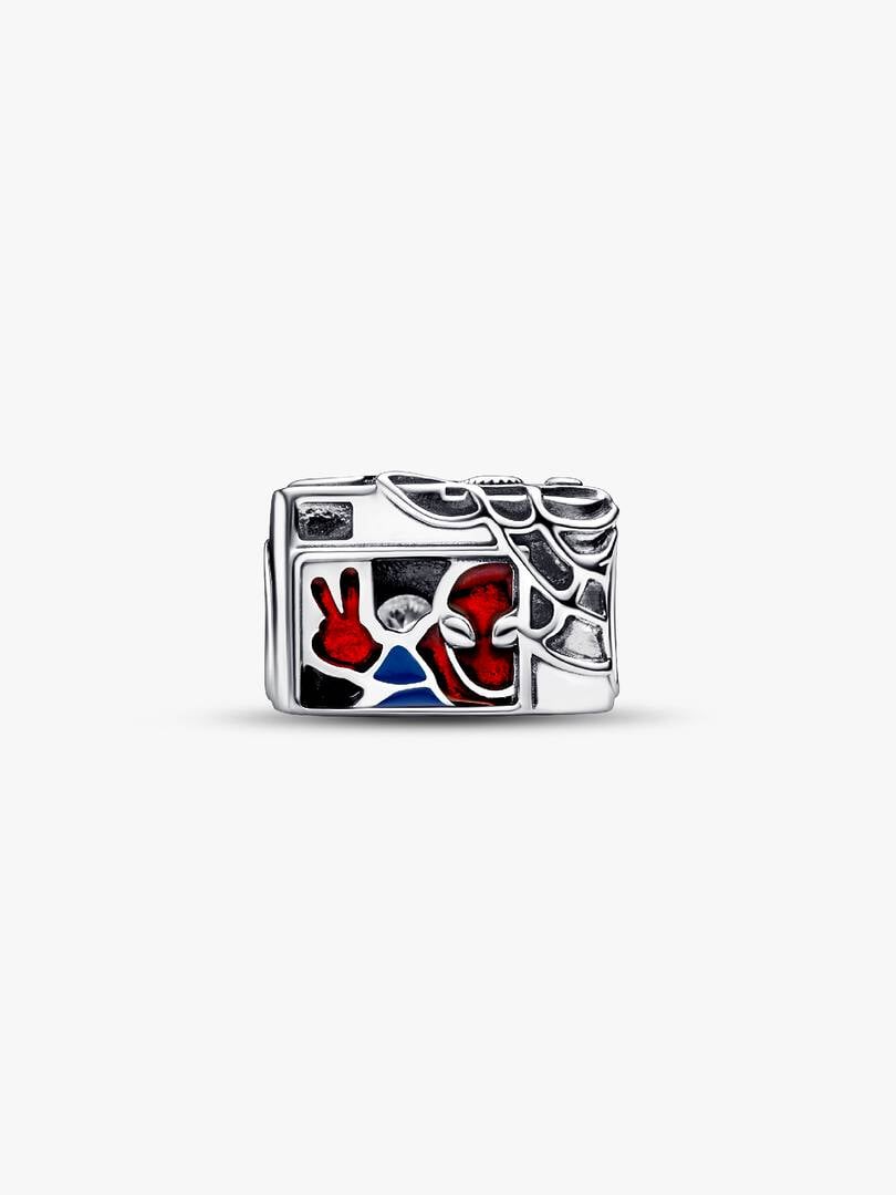 the shape of a camera, with everyone’s favorite neighborhood Super Hero in the display, as if he’s just cheekily taken a selfie and left it on the camera for a budding photographer to find. Finished with enamel detailing in bright, bold colors, the camera’s lens features a bezel-set round brilliant-cut cubic zirconia, plus silver web detailing on the corner of the camera. Style this quirky charm on your bracelets, earrings or charm holders as a reminder that you’re amazing as you are.