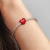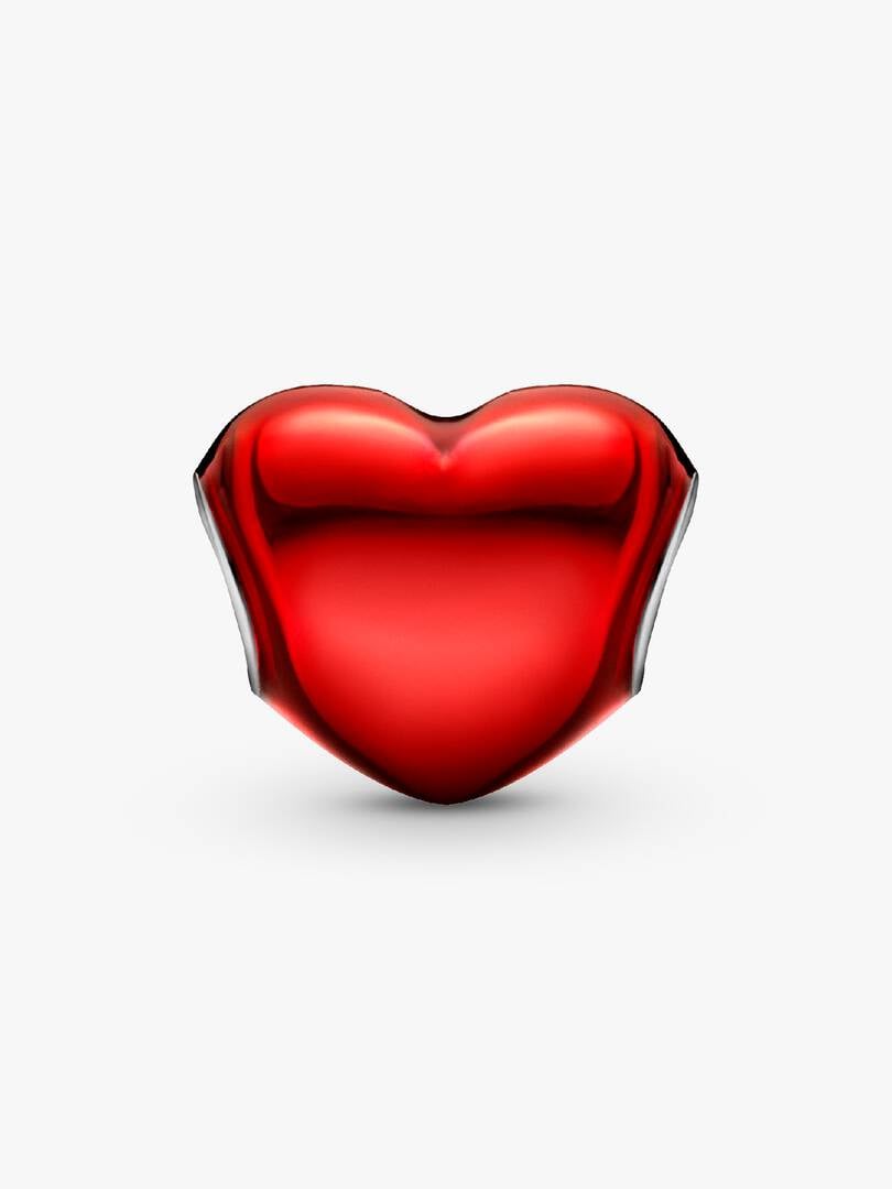 Make your style pop with the Metallic Red Heart Charm. Hand-finished in sterling silver, this heart-shaped piece is decorated with hand-applied transparent red enamel so that the base shines through. The perfect balance