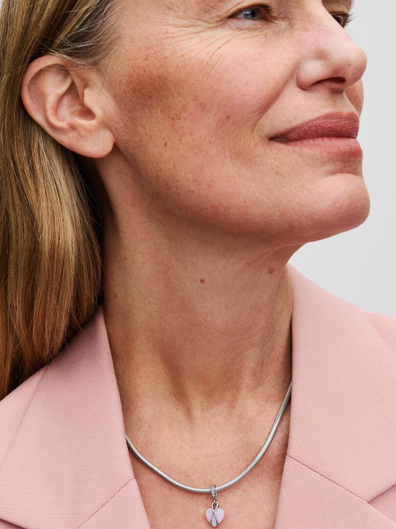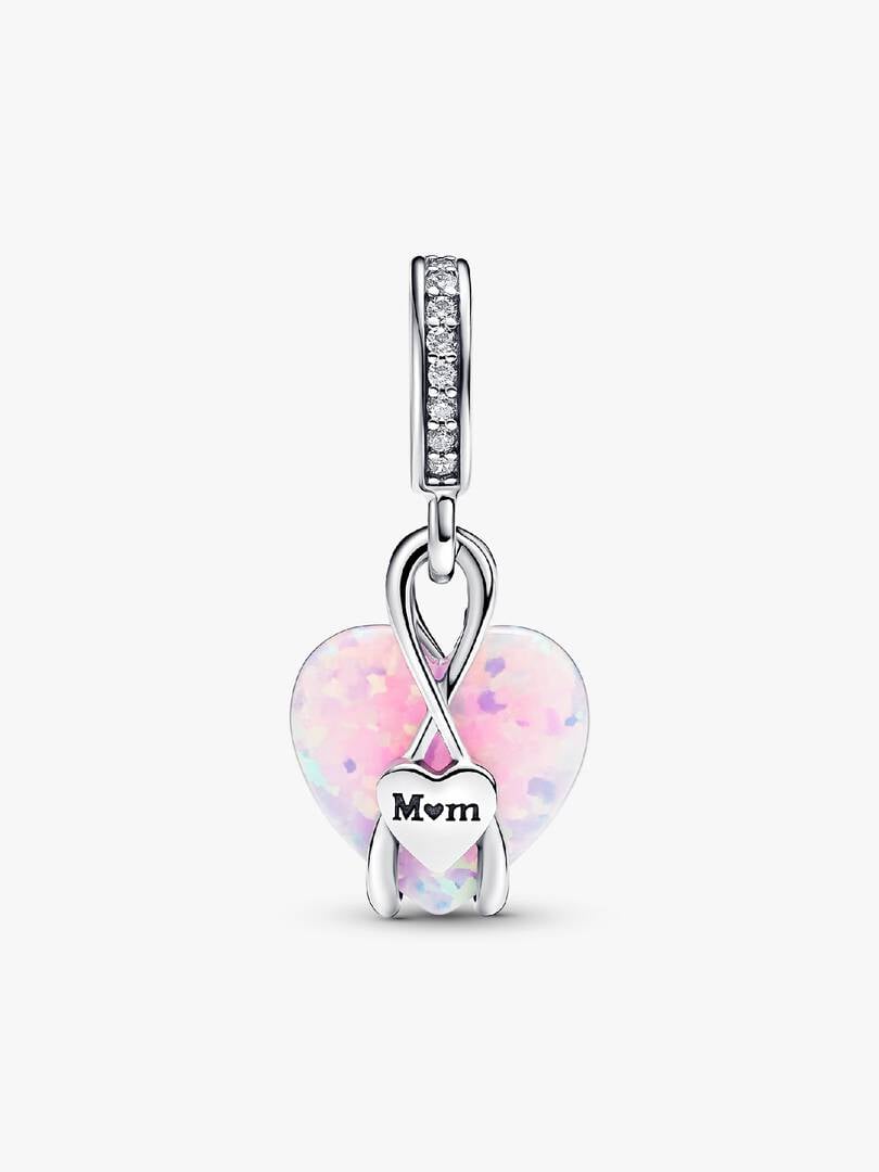 Celebrate your mom with the brand Mom Opalescent Heart Dangle Charm. Crafted in sterling silver, this heart-warming charm features a heart-shaped pink lab-created opal, adorned with a spectrum of colors and glittering