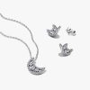 Celebrate moon magic with this sterling silver necklace and earring set featuring crescent shapes and twinkling cubic zirconia. A radiant gift for someone who follows their inner light.